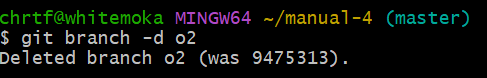 브랜치를 삭제하기 위해서는 현재 브랜치를 master 브랜치로 checkout한 후에 -d 옵션을 써서 삭제한다.