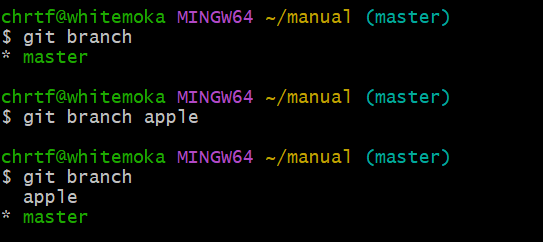 $ git branch 명령어를 사용하는 것으로 깃에다 브랜치를 만들 수 있다.