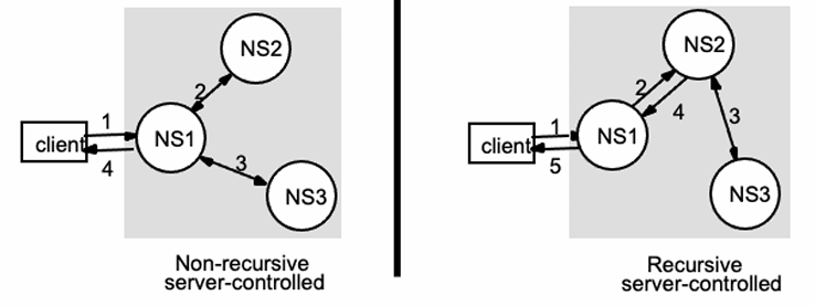 DNS는 클라이언트(호스트)와 DNS 서버 간 이름 해석 시 두 가지 대표적인 질의 처리 방식을 제공한다.