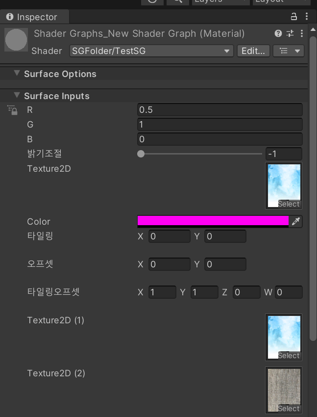 타일링이 곱셈이라면 오프셋은 덧셈이다. 그대로 ADD만 연결해주면 된다. 기본값은 0.