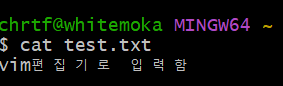 문서 편집 명령어는 아니지만 cat 명령어를 입력하면 터미널 화면에 그 텍스트 파일의 내용을 보여준다.
